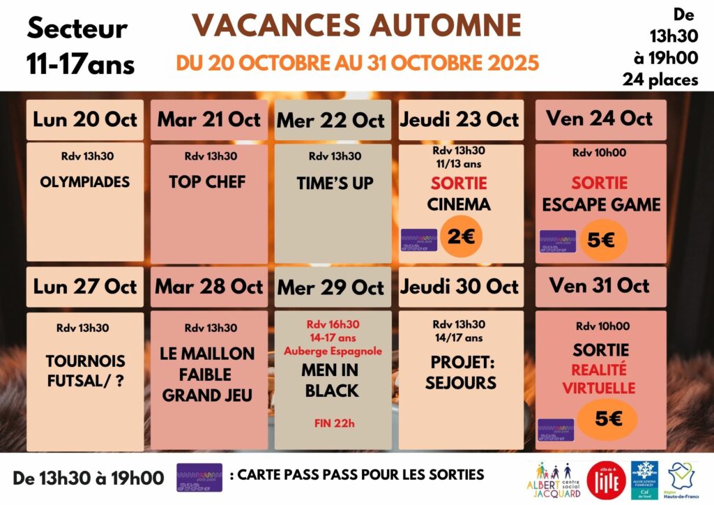 Attention les places sont limitées ! Inscrivez vous en précisant les jours souhaités à l’accueil du Centre social ou à contact@csjacquard.fr
